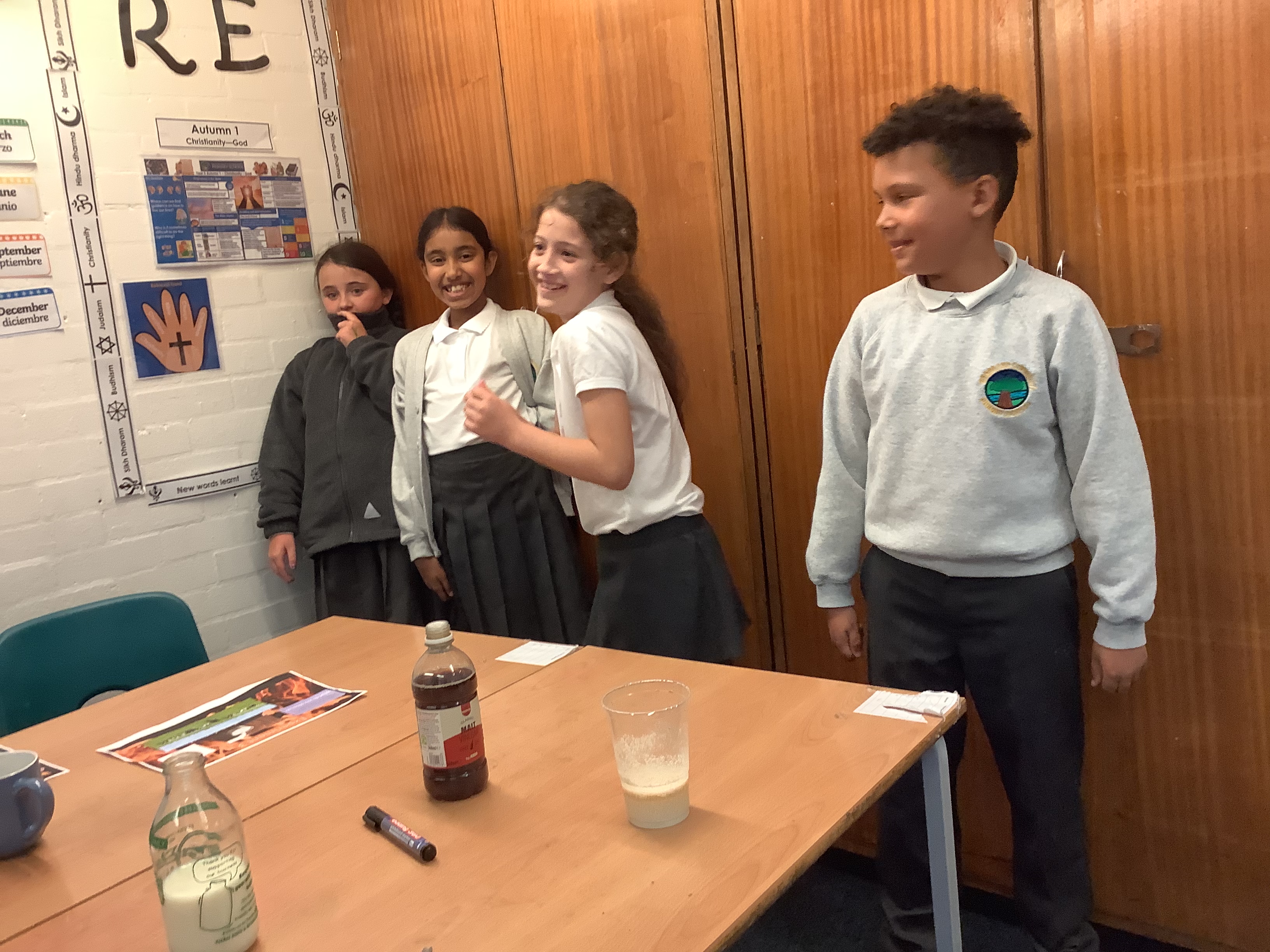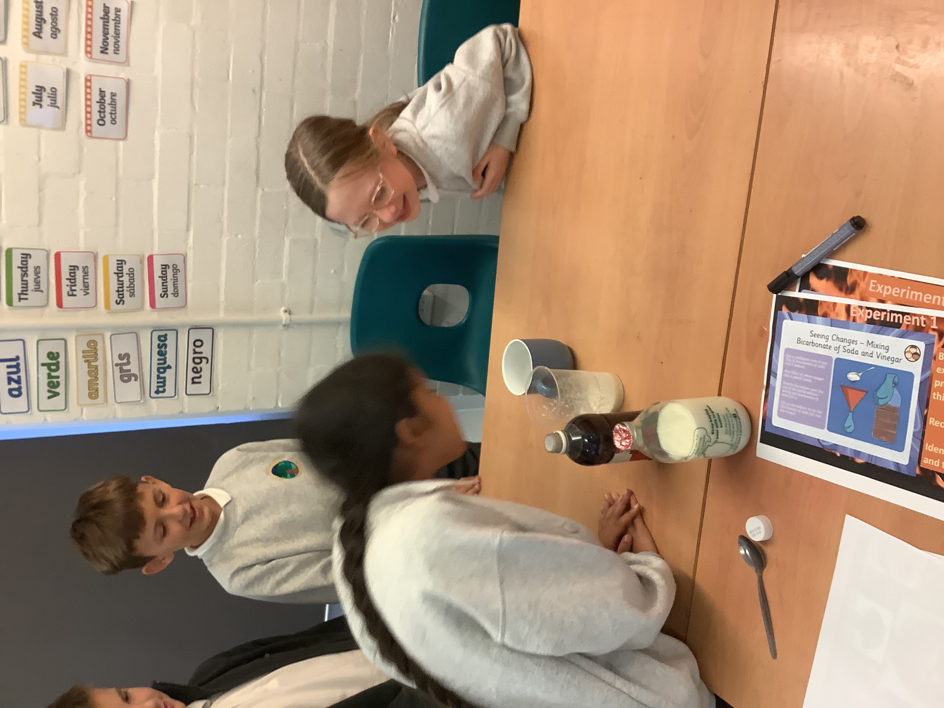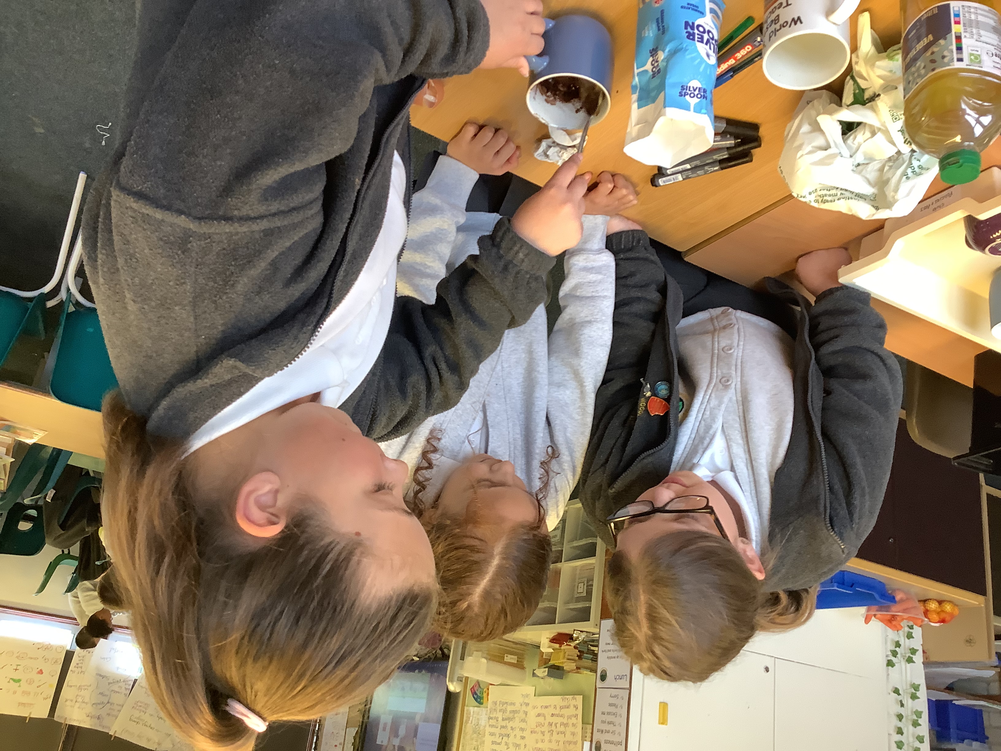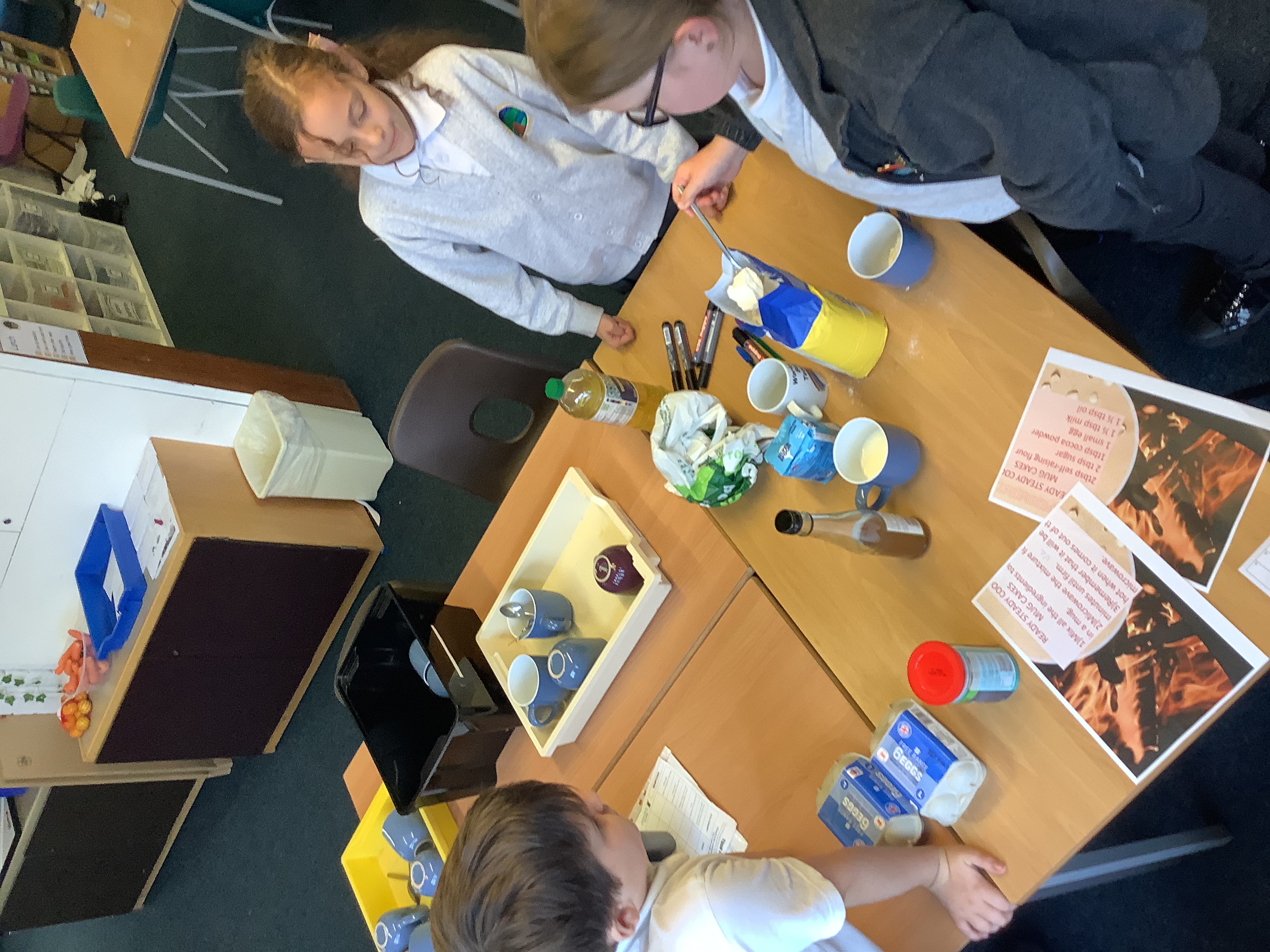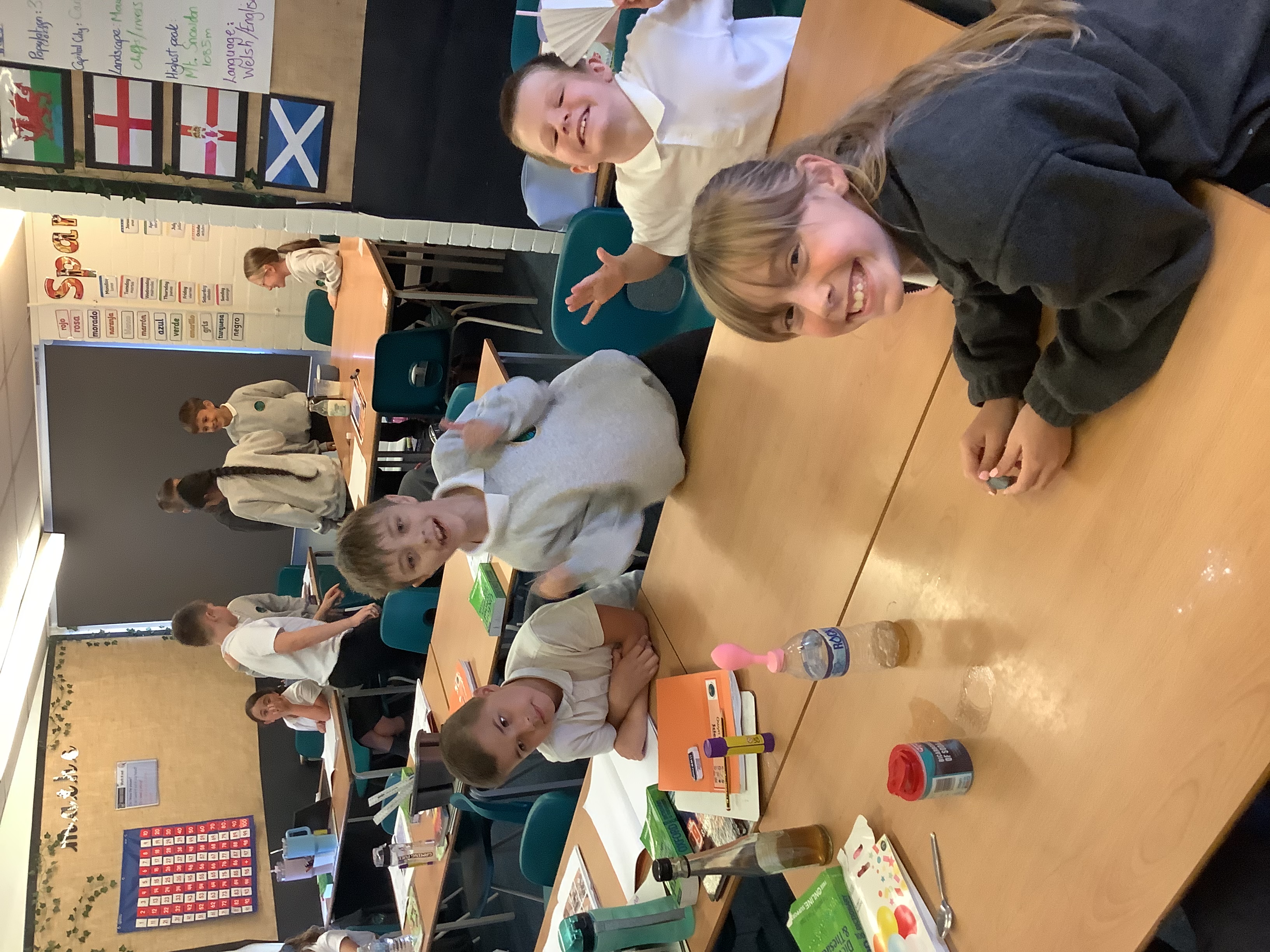 We investigated what happens mixing materials and seeing the chemical changes. Lots of messy fun 🙂