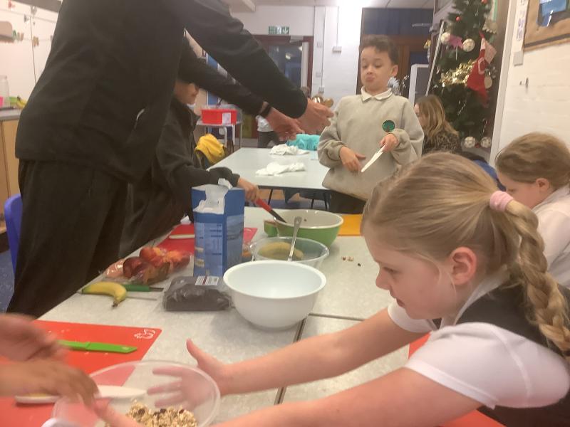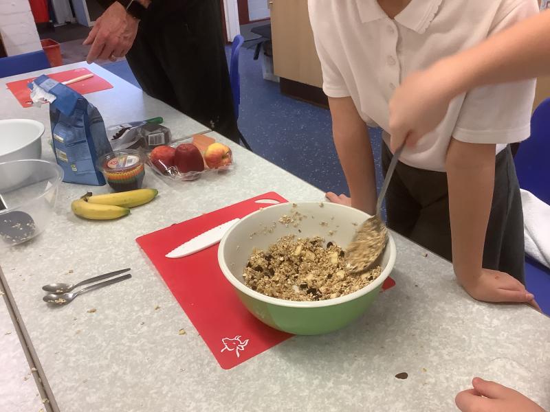 Year 3 planned and created and tasted a healthy snack. Using oats, honey and dried fruit. Yummmm.