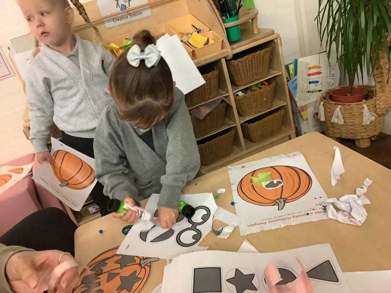 What a busy morning we have had! We are continuing to develop our cutting skills by creating spooky pumpkin faces. We are enjoying building and balancing with a variety of construction materials and we are developing our painting skills.