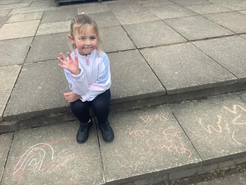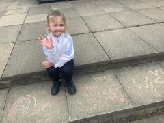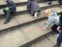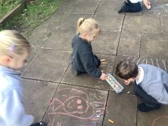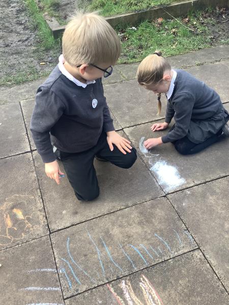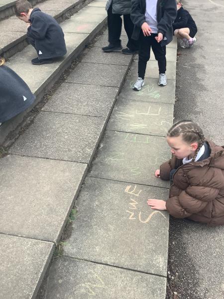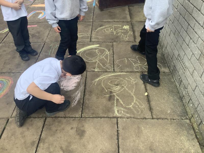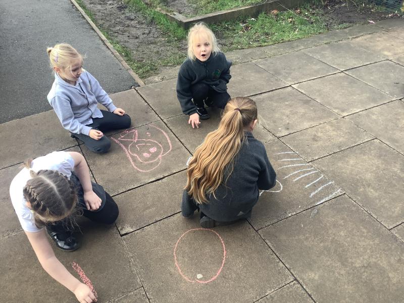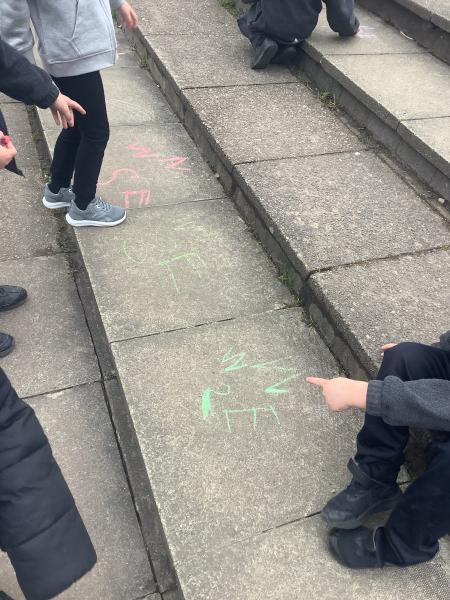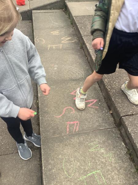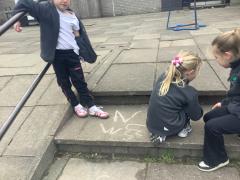 Geography - we used chalk to draw What is the weather like today and directions.