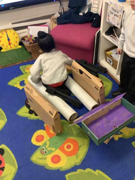 Reception love to build, design and negotiate their plans with each other. We have had some amazingly creative designs this week e.g confetti cannons, speed boats, Chinese dragons, chocolate cannons, reusable chocolate straws, recipes in the kitchen and much, much more!!!