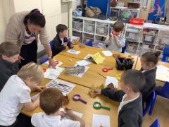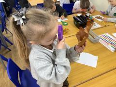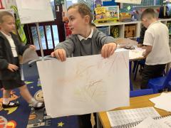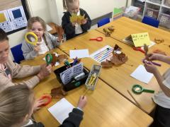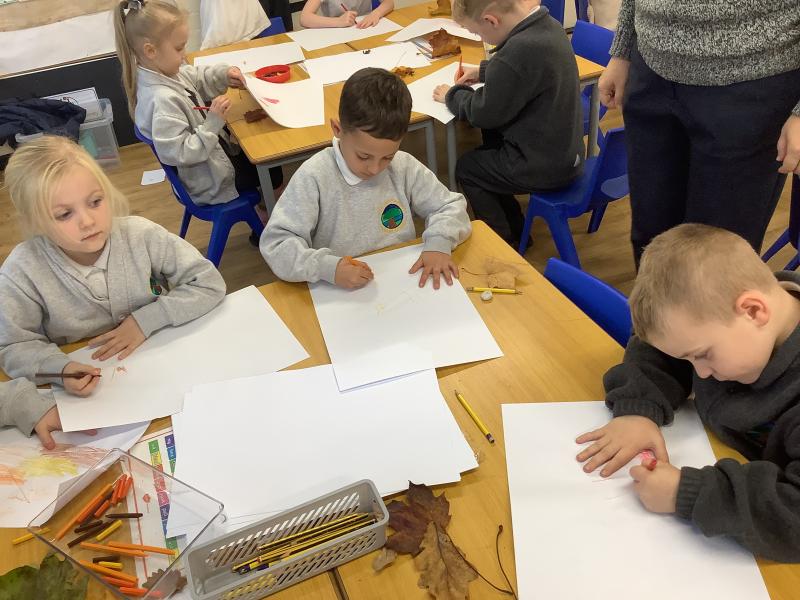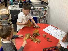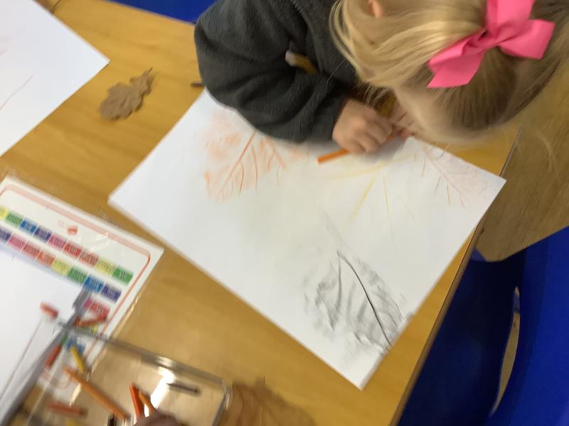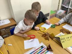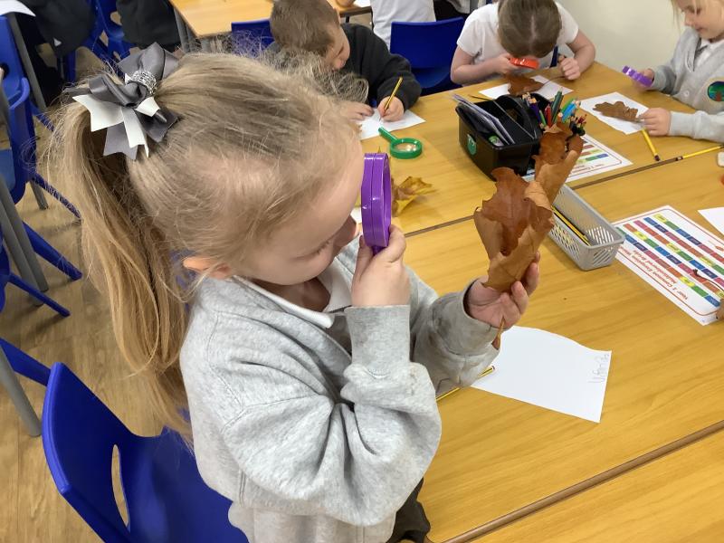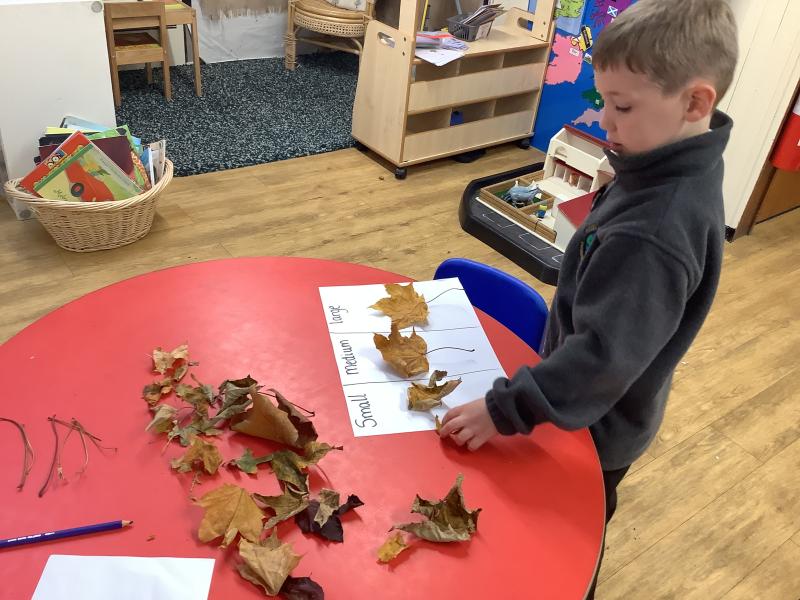 We explored and observed Autumn leaves by using magnifying glasses to look closely at the different leaves we collected. We also arranged them in sizes, colours and shapes and made lovely leaf rubbing pictures.
