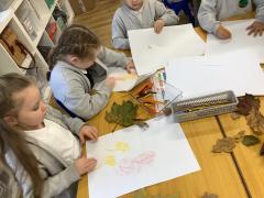 We used our observational skills to arrange, describe and create leaf pictures using autumn leaves.
