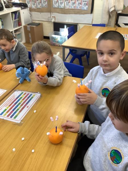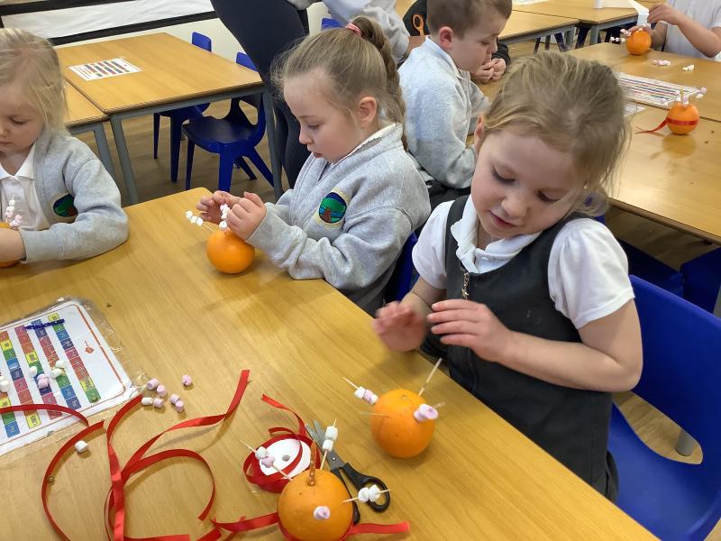 We looked at Christian tradtions at Christmas time and made Christingles.