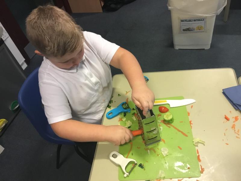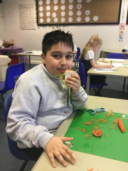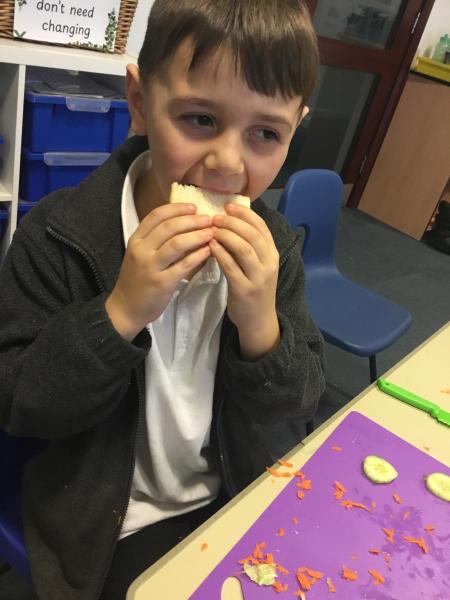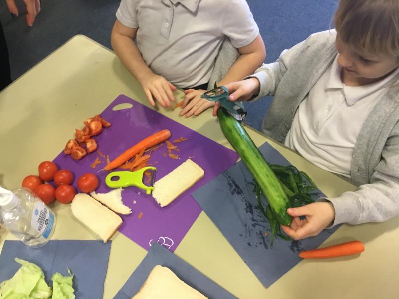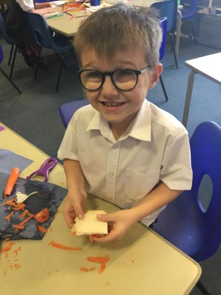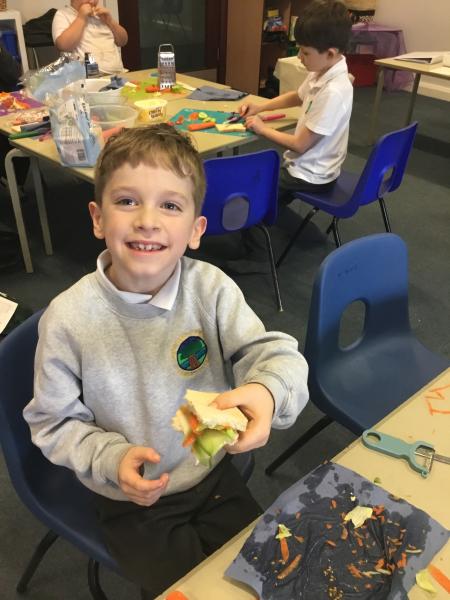We loved our Autumn D&T project. Designing and making a Healthy Salad Sandwich. We also developed our skills of cutting, grating, chopping, slicing, peeling and spreading!